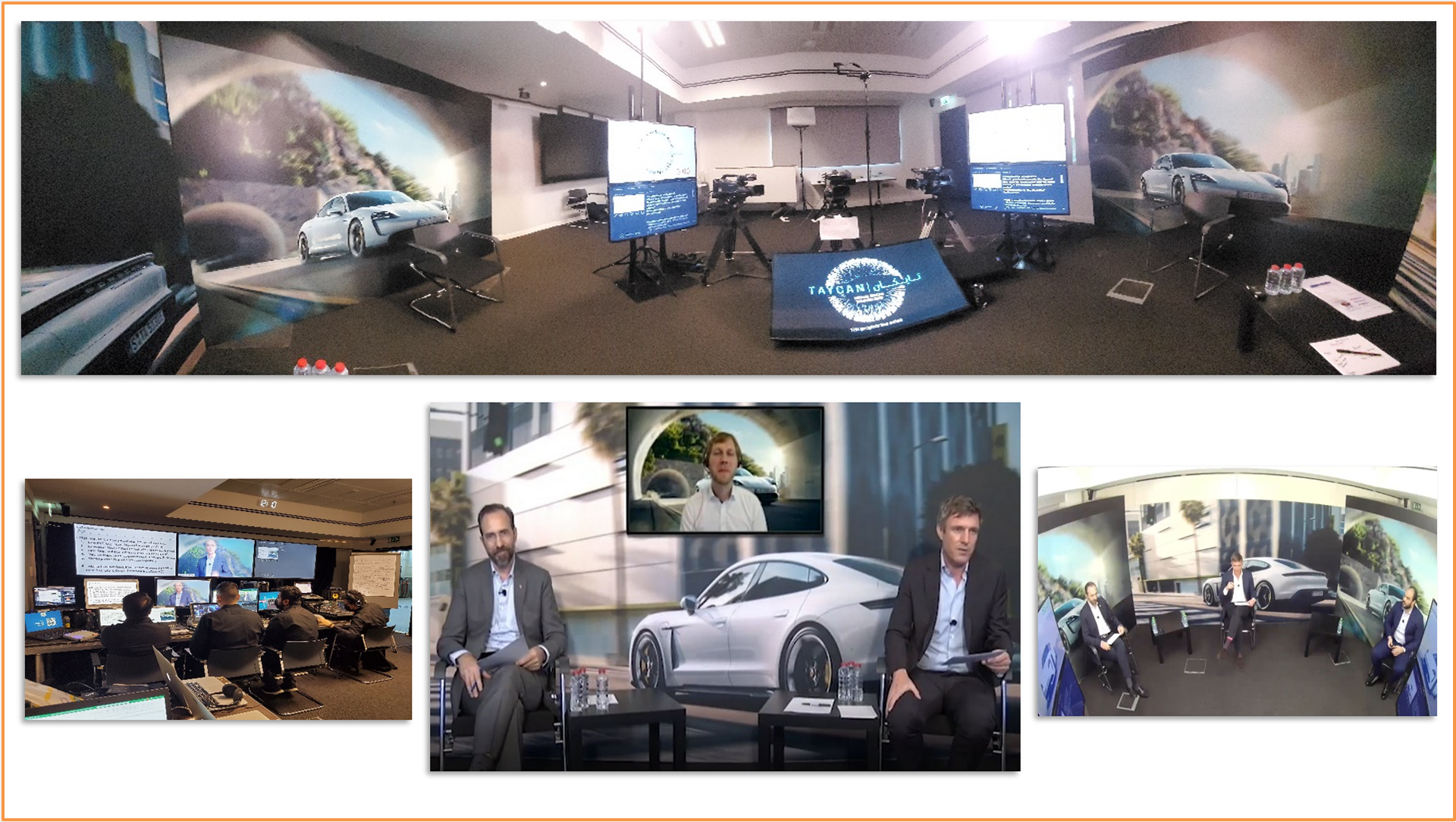 ALMOE’s solution was to set a studio up in one room, and the control system in the other room. The Studio contained 4 cameras / lighting / Monitor screens for presentations and Q&A / Director talkback system for Host.